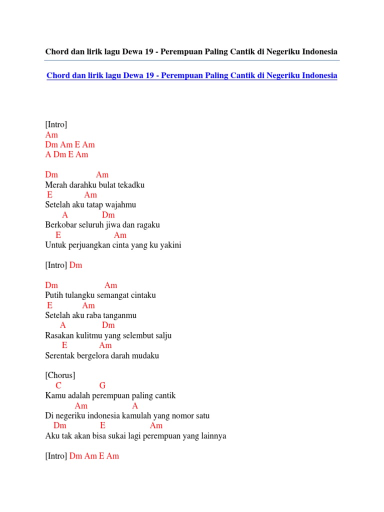 Chord Dan Lirik Lagu Dewa 19 Perempuan Paling Cantik Di Negeriku Indonesia Pdf